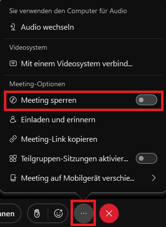 Da dies eine campusweite Einstellung ist, empfehlen wir eine automatische Meeting Sperre nach Beginn für den Persönlichen Raum zu aktivieren. Diese finden Sie in den Einstellungen zu "Mein Persönlicher Raum".
