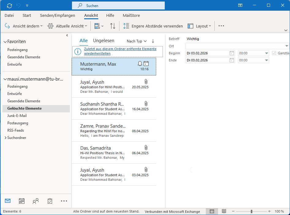 Ordner „Gelöschte Elemente“ auswählen
