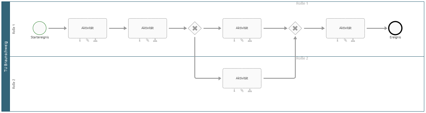 Bei der Prozessmodellierung ist in einem BPMN-Modell grundsätzlich von links nach rechts zu modellieren. Die Rolle, in der der Prozess startet, steht immer ganz oben.