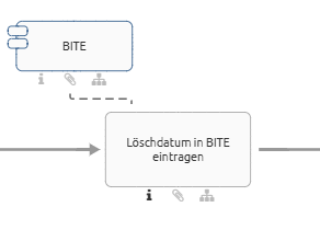 Applikationen werden links oberhalb der Aktivität modelliert und verbunden.
