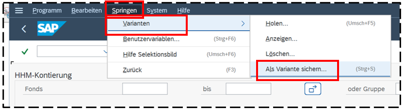 Der Aufruf gespeicherter Varianten erfolgt mit Klick auf