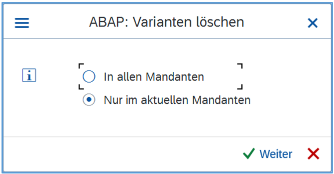hat man noch die Wahl, die Variante in allen Mandanten oder nur im aktuellen Mandanten zu löschen: