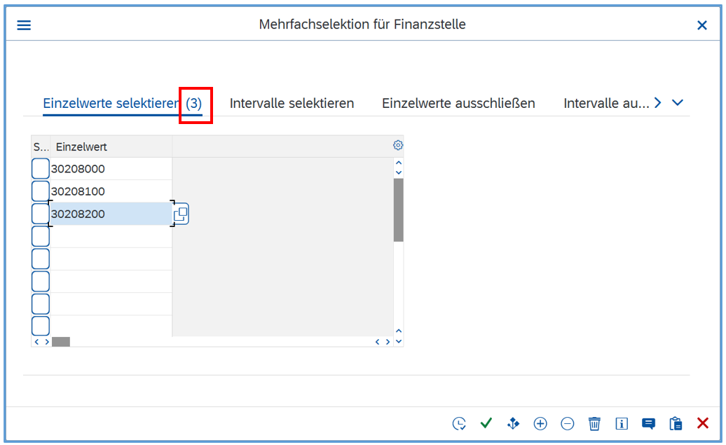 Selektion der Kostenstelle 30208000: