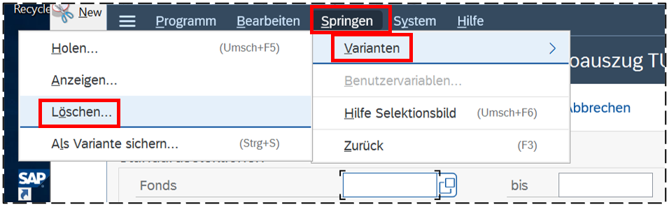 Eine Variante löschen kann man über das Menü Springen ® Varianten ® Löschen: