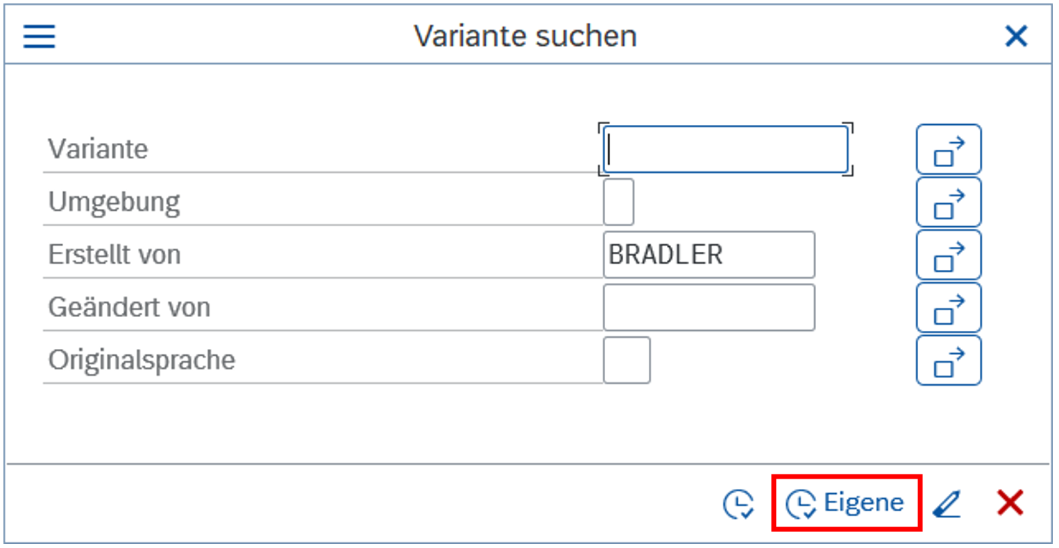 Man kann dann noch verschiedene Suchkriterien eingeben, vorgeschlagenen ist z.B. die Suche aller Varianten, die man selbst erstellt hat: