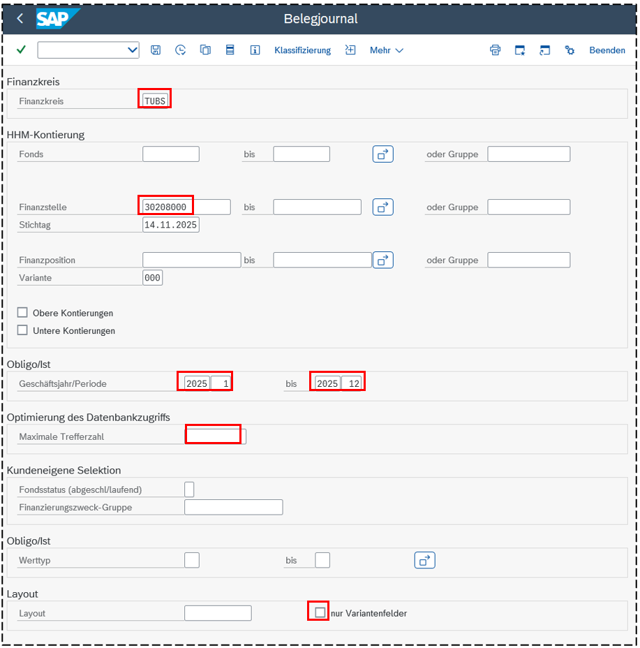 - Maximale Trefferzahl: Voreinstellung 500 bedeutet, dass nur 500 Datensätze angezeigt werden. Um sicherzugehen, dass alle Datensätze angezeigt werden, sollte diese Zahl entfernt werden.