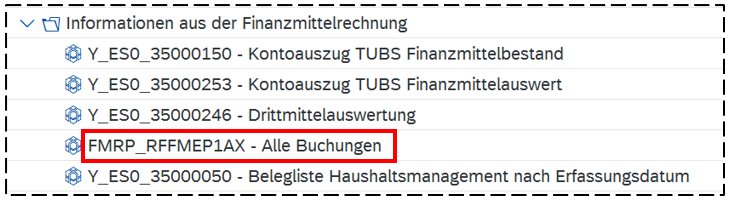 Am Beispiel des Berichtes „Alle Buchungen“ (Ordner: Informationen aus der Finanzmittelrechnung) sollen im Folgenden die Grundsätze der Selektionsmasken erläutert werden.