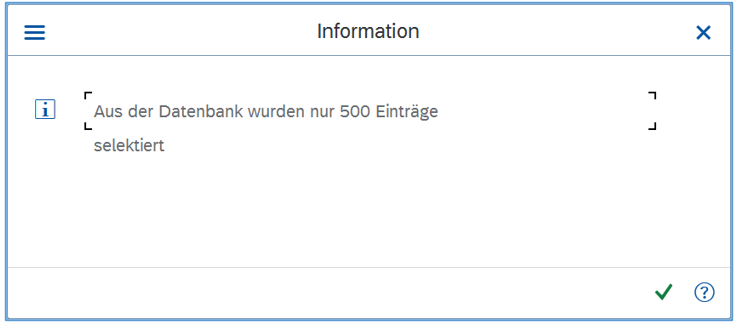 Bei Einschränkung der maximalen Trefferzahl wird vor Erscheinen der Ergebnisansicht darauf hingewiesen: