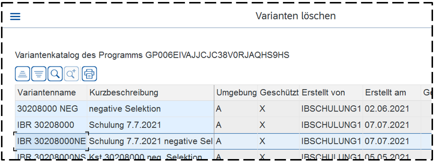 Wenn man dieselben Selektionseinstellungen häufiger braucht, kann man diese als sogenannte Variante speichern:
