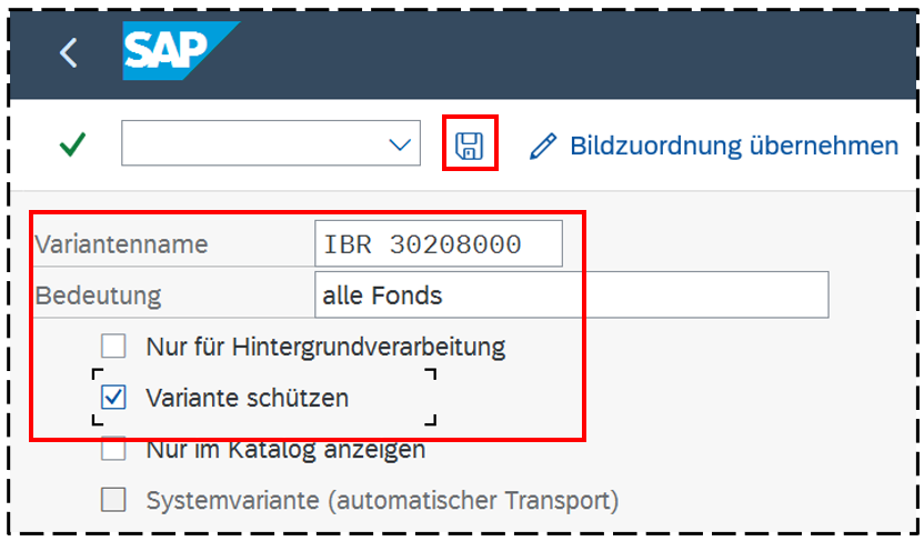 Es ist zu empfehlen, einen HAKEN bei Variante schützen zu setzen. Anderenfalls kann die Variante von anderen Nutzern überschrieben werden. Mit erneutem Klick auf
