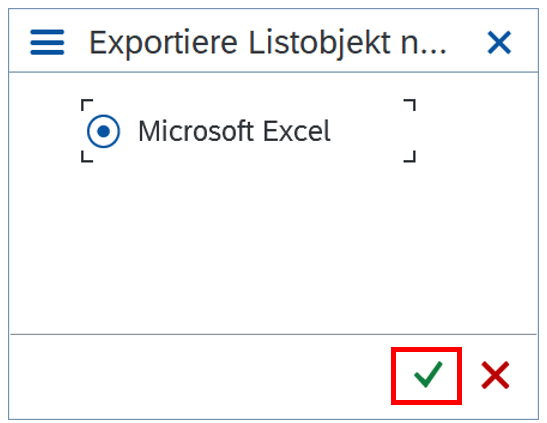 Hier empfiehlt es sich, Tabelle auszuwählen und mit dem grünen Haken zu bestätigen. Dann muss noch einmal Microsoft Excel bestätigt werden: