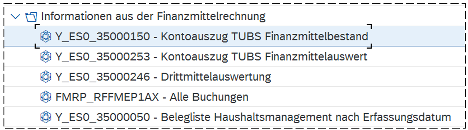 - Dezentrales Berichts- und Formularwesen mit SAP: https://informationsportal.tu-braunschweig.de/portal/catalog/entities/details?tenantId=257328d7-59ab-46b9-9385-cf12c36df3d7&repositoryId=ca3fd7e2-4f66-40bd-84fe-0cf85c3fc49e&stageId=published&entityId=eb4a155b-73d5-474b-8a46-41d7e57800d9