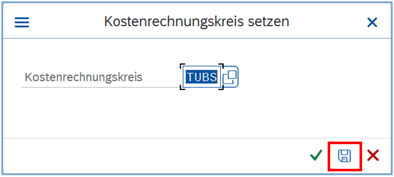 Nach dem Aufruf muss evtl. zunächst als Kostenrechnungskreis TUBS eingetragen werden: