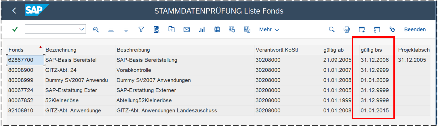Bericht: Stammdatenprüfung - Liste Fonds
