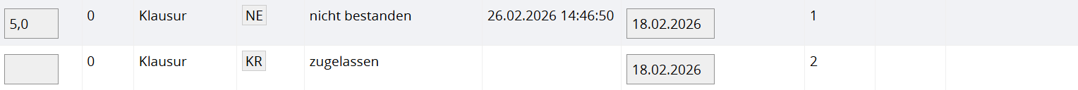 - AE = Die Leistung wurde durch das Prüfungsamt anerkannt
