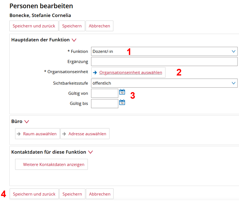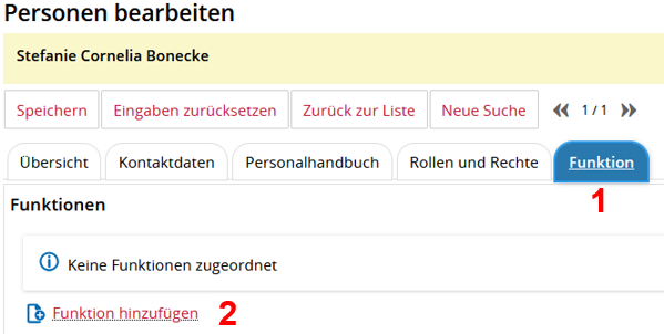 5. Funktion Dozent/-in einer Person zuordnen