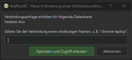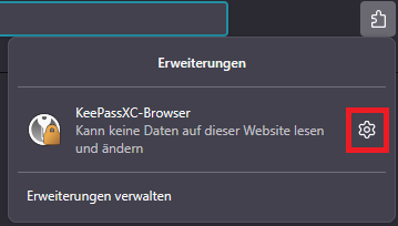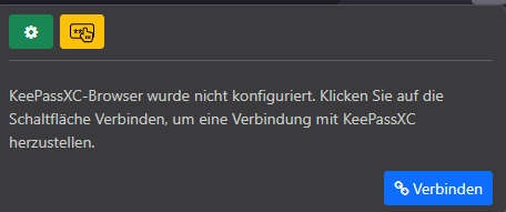 Next, connect the browser to KeePass by opening the extension and clicking „Verbinden“.