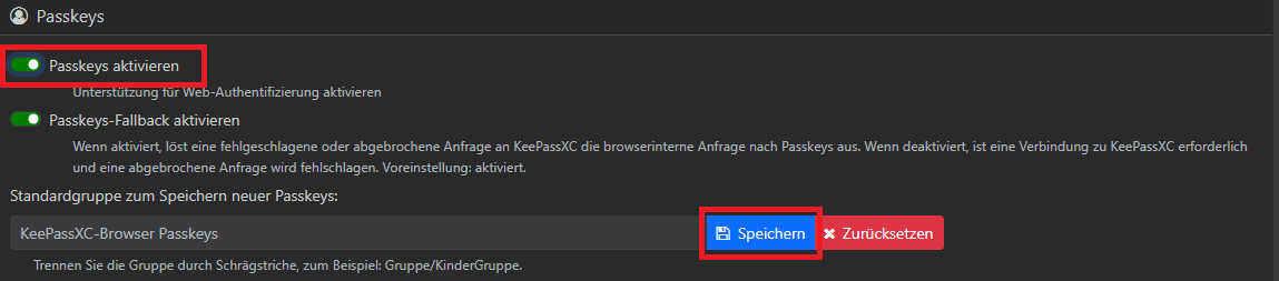 In the settings, scroll down to the „Passkeys“ section. Enable passkeys there and save the changes.