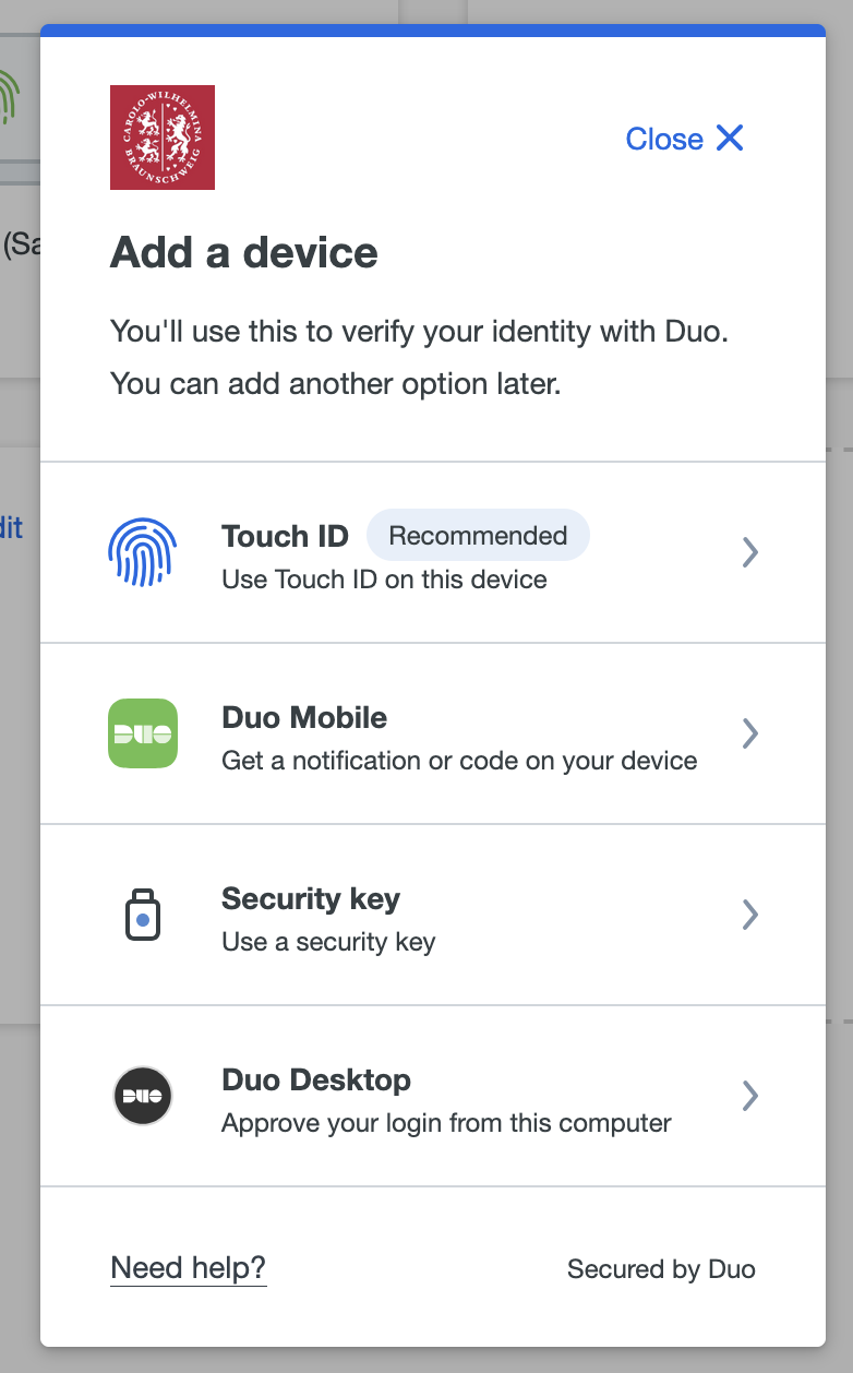 Loggen Sie sich wie auf der Seite zur Geräteverwaltung beschrieben im Duo Portal ein.