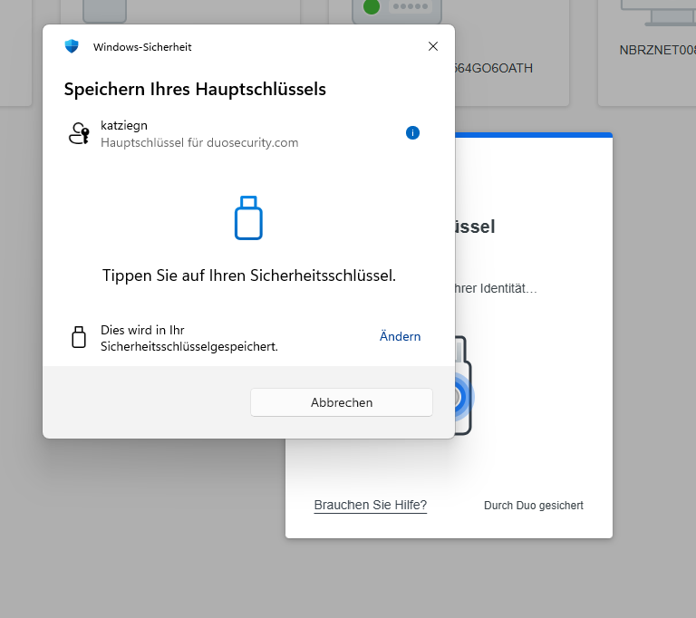 Stecken Sie ihren Yubikey in Ihr Arbeitsgerät ein und Speichern Sie ihn ab.